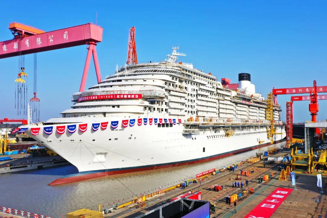 12月17日,備受關(guān)注的中國船舶集團(tuán)“一號(hào)工程”——中國首制大型郵輪在中國船舶集團(tuán)旗下外高橋造船順利實(shí)現(xiàn)塢內(nèi)起浮的里程碑節(jié)點(diǎn)。經(jīng)過全船殘余應(yīng)力釋放、首次測(cè)定重量重心等一系列關(guān)鍵工藝要素和技術(shù)指標(biāo),進(jìn)一步驗(yàn)證中國首制大型郵輪在設(shè)計(jì)、工藝、生產(chǎn)準(zhǔn)備、總裝建造等階段所取得的一系列重大科研成果,標(biāo)志著該工程從結(jié)構(gòu)和舾裝建造的“上半場”全面轉(zhuǎn)段進(jìn)入內(nèi)裝和系統(tǒng)完工調(diào)試的“深水區(qū)”,向著2023年9月份完工交付的總目標(biāo)又邁出了關(guān)鍵一步。