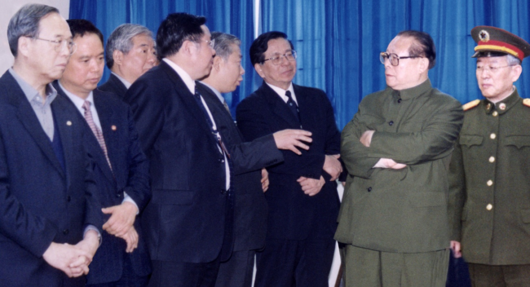 1994年4月29日,江澤民同志在視察江南造船時看望工人。