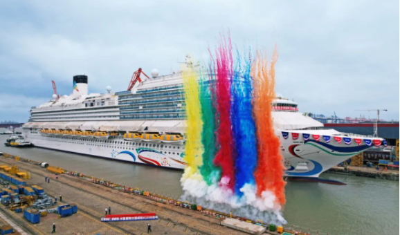 今天,我國首艘國產大型郵輪“愛達·魔都號”在中國船舶集團外高橋造船順利出塢。