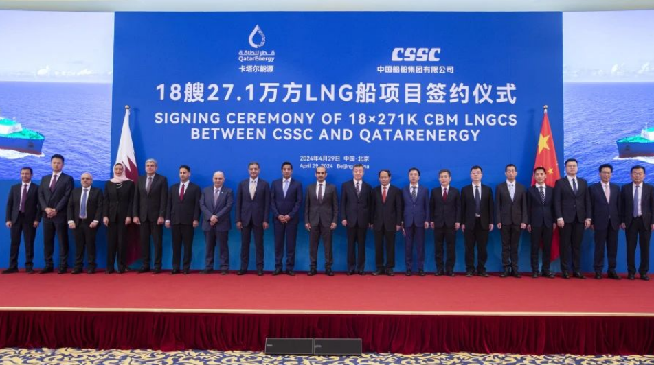 薩阿德·謝里達·阿爾卡比在致辭中表示,卡塔爾能源與中國船舶集團簽署18艘全球最大27.1萬立方米LNG船項目建造合同,創(chuàng)造了單筆新船訂單金額最高紀錄,是一次歷史性的突破。該批次船舶將支持卡塔爾能源在北部氣田擴大生產能力,滿足船隊長期的更新需求。希望卡塔爾能源與中國船舶集團今后能進一步深化務實合作,共同助力行業(yè)可持續(xù)發(fā)展。