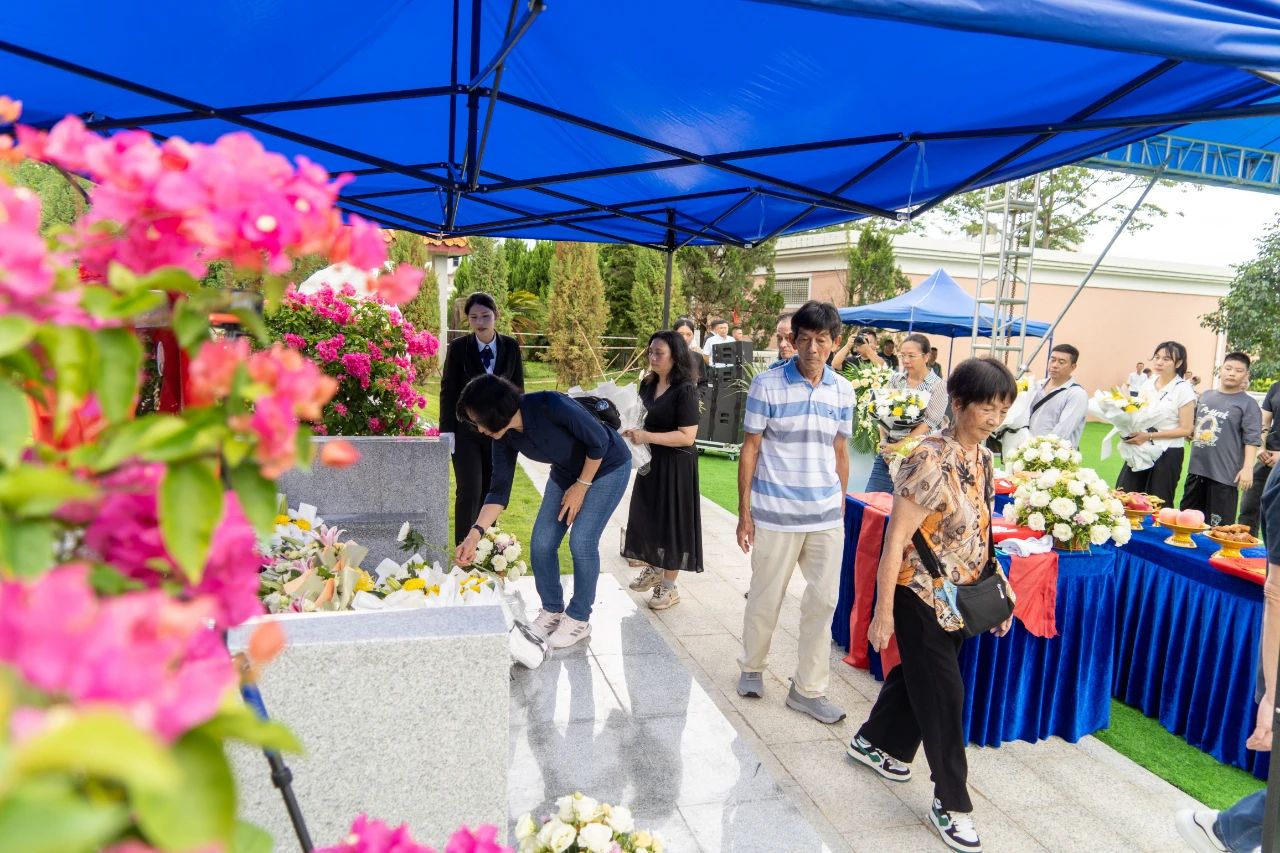 親屬代表擦拭墓碑后,在禮賓人員的引導下將黃旭華院士的骨灰安放進墓穴。人們向黃旭華院士墓碑行三鞠躬禮,并敬獻鮮花,以簡約而莊重的儀式,送別國之脊梁。
