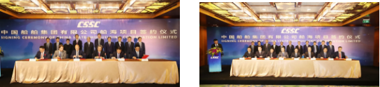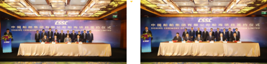 ????主要簽約項目包括:中國船舶集團所屬重慶川東船舶重工有限責任公司與中遠海運(上海)有限公司1.38萬噸不銹鋼化學品船項目;中國船舶集團所屬大連船舶重工集團有限公司與招商輪船VLCC項目;中國船舶集團所屬上海外高橋造船有限公司與工銀租賃21萬噸散貨船項目、外高橋造船與EPS公司20.9萬噸雙燃料散貨船項目;中國船舶集團所屬江南造船(集團)有限責任公司與太平洋氣體公司VLEC項目、江南造船與 SINOGAS86000立方米VLGC項目、江南造船與UECC公司3600車汽車滾裝船項目、江南造船與派格達克公司22000方乙烯船項目;中國船舶集團所屬廣船國際有限公司與斯坦納公司5萬噸甲醇雙燃料油船項目、廣船國際與EPS公司LNG雙燃料蘇伊士油船項目、中國船舶集團所屬滬東中華造船(集團)有限公司與MOL18600立方LNG加注船項目;中國船舶集團所屬武船集團青島北海船舶重工有限責任公司與中國船舶集團所屬中船租賃21萬噸散貨船項目、中國船舶集團所屬中船澄西船舶修造有限公司與國銀租賃85000噸散貨船項目、重慶川東船舶重工與重慶冠達世紀游輪650客游輪項目;中國船舶租賃與 Golar LNG 船舶改裝融資租賃項目、中國船舶租賃與SINOGAS86000立方米VLGC融資租賃項目;中船租賃與山東海運21萬噸散貨船融資租賃項目、中船租賃與Navig 8 成品油船聯(lián)合投資協(xié)議、中船租賃與新加坡星展銀行VLCC融資協(xié)議。