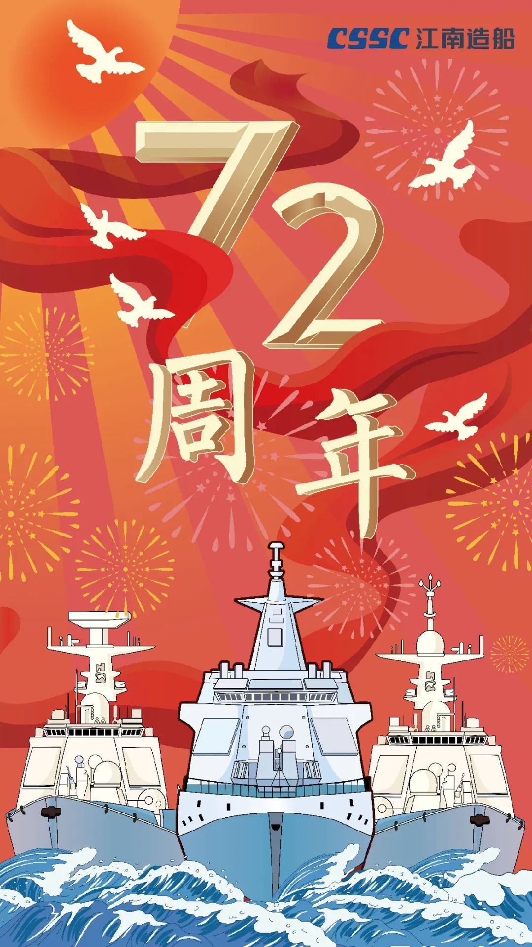 今天,我們迎來新中國72周年華誕。作為我國海軍裝備建設的主力軍,中國船舶大船集團將不忘初心,牢記使命,堅定貫徹海洋強國、制造強國、科技強國國家戰(zhàn)略,聚焦主責主業(yè)、聚力興裝強軍,為實現(xiàn)中華民族偉大復興的中國夢而不懈奮斗。