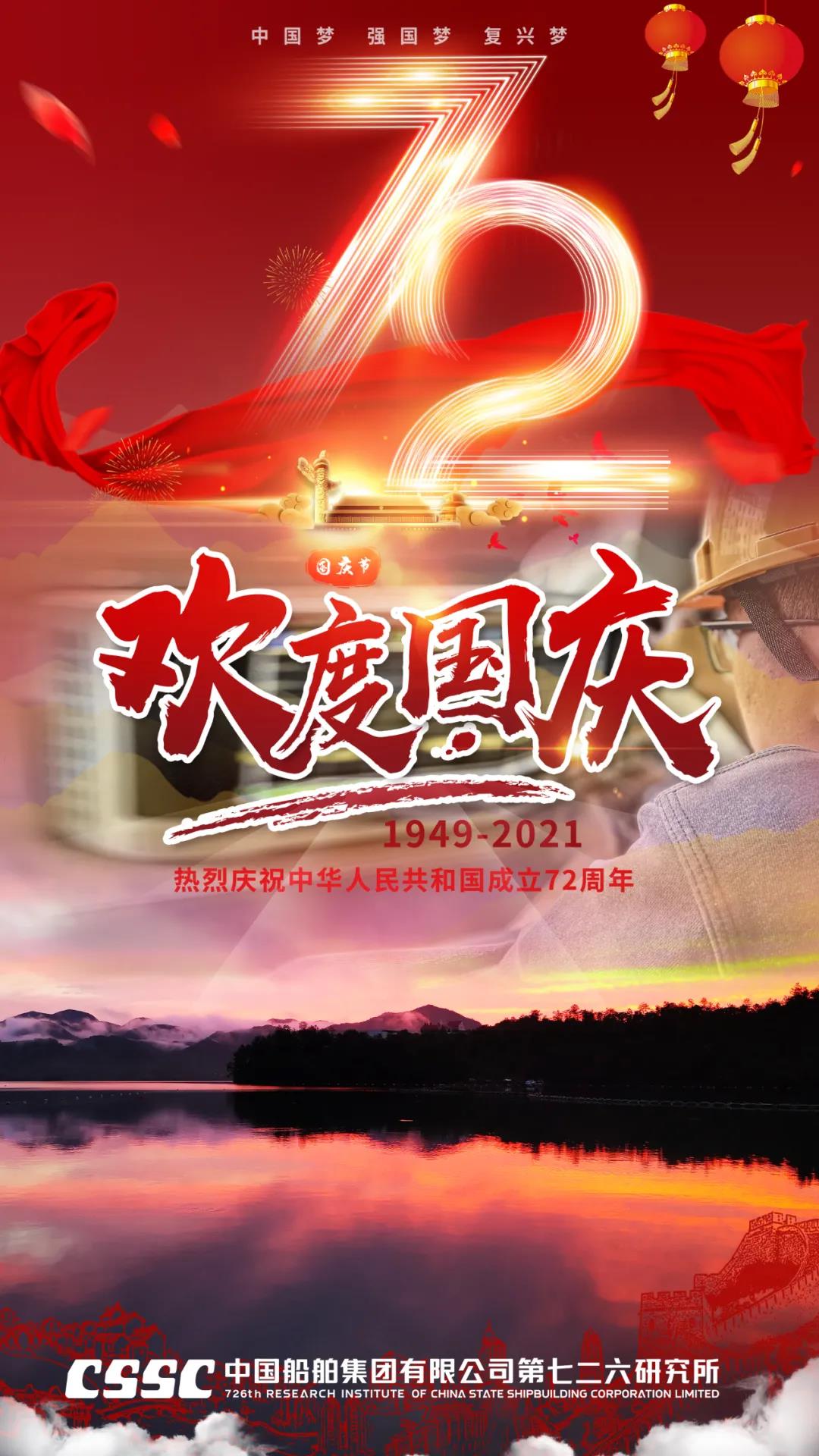 72年篳路藍縷,72年風雨兼程,正值建黨百年之際,恰逢新中國72周年華誕,中國船舶七二六所為祖國獻上最真摯的祝福!祝福偉大祖國繁榮昌盛!七二六人將繼續(xù)用智慧和汗水譜寫水聲華章,用創(chuàng)新和拼搏開拓新時代新征程,為建設海洋強國貢獻磅礴力量!