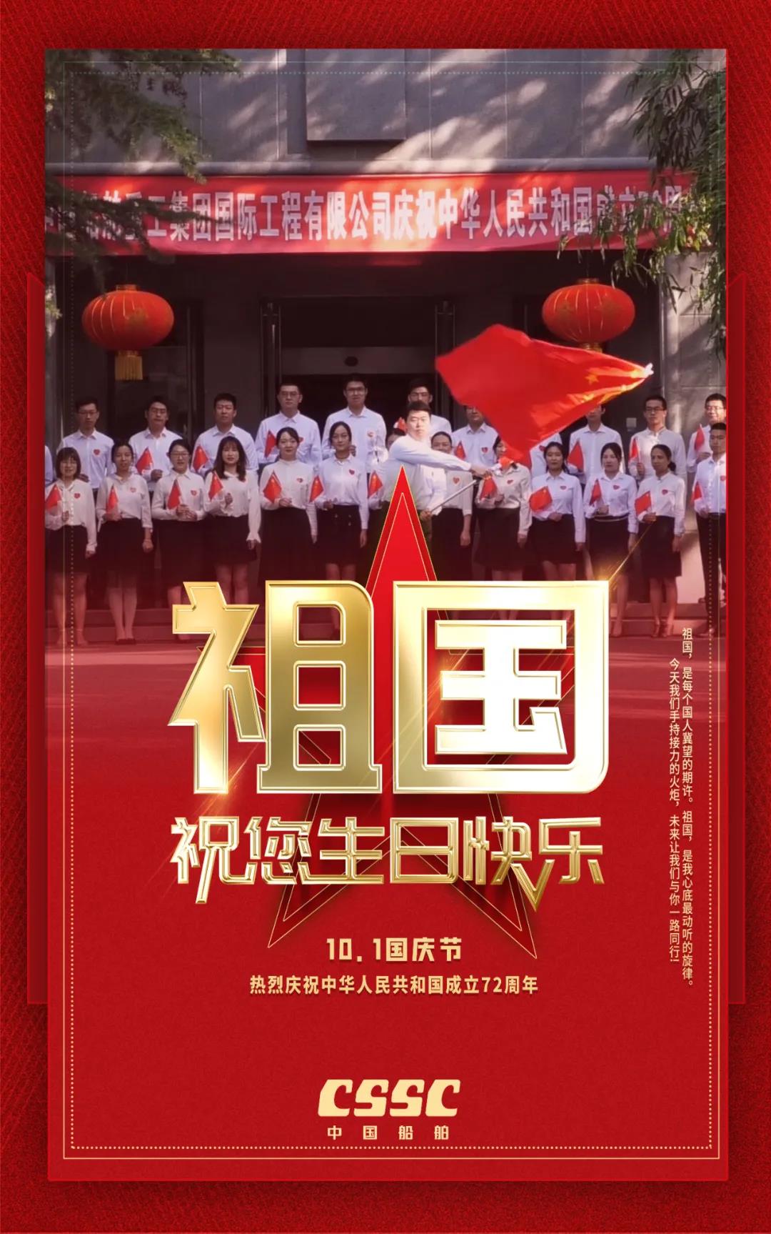祖國,是每個國人冀望的期許!祖國,是船舶人心底最動聽的旋律!72年來,新中國經(jīng)歷了風風雨雨;72年過去,成就了盛世風華,中國船舶六〇二院全體員工祝新中國生日快樂!