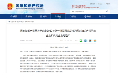 10月31日,國家知識產(chǎn)權(quán)局發(fā)布了《關(guān)于確定2022年新一批及通過復(fù)核的國家知識產(chǎn)權(quán)示范企業(yè)和優(yōu)勢企業(yè)的通知》(國知發(fā)運(yùn)函字〔2022〕160號)。