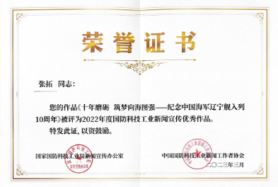 會議對2022年度國防科技工業新聞宣傳優秀作品、優秀案例、優秀個人、優秀組織代表進行現場表彰。中國船舶集團黨群工作部選送的《十年磨礪 筑夢向海圖強——紀念中國海軍遼寧艦入列10周年》獲評2022年度國防科技工業新聞宣傳優秀作品、《中國船舶集團定點幫扶云南20年之全媒體——微博、抖音、微信、報紙走基層報道》獲評2022年度國防科技工業新聞宣傳優秀案例,中國船舶集團旗下滬東中華張文豪獲評2022年度國防科技工業新聞宣傳優秀個人,中國船舶集團旗下中國船舶報社獲評2022年度國防科技工業新聞宣傳優秀組織。