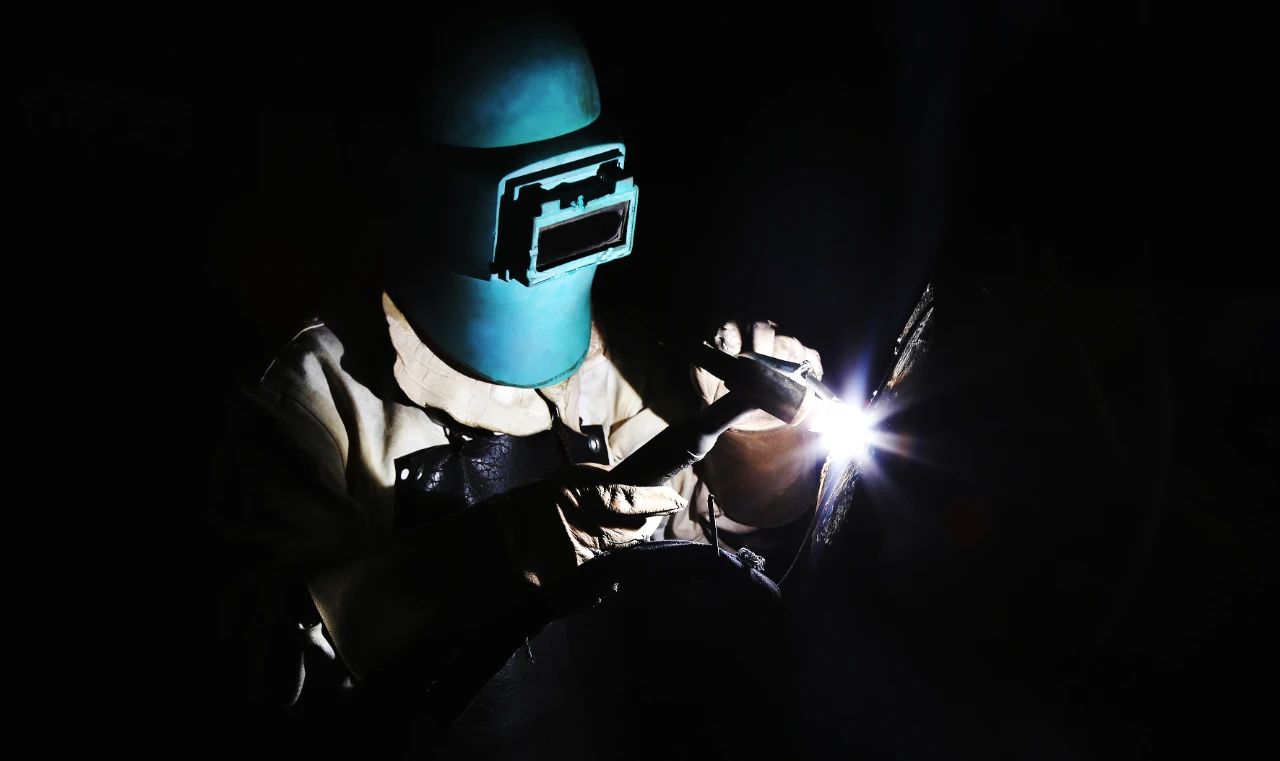 一位“全副武裝”正在進行焊接作業的焊工,焊花飛舞在狹小的工間里,折射出如彩云般的景象,猶如巨人正在“補天”。