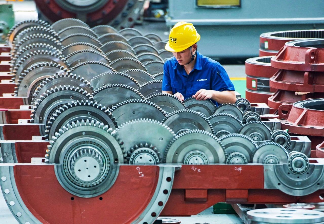 一位工人正在認真的檢查組裝好的齒輪箱,確保其高質量產出,驅動公司產業發展。