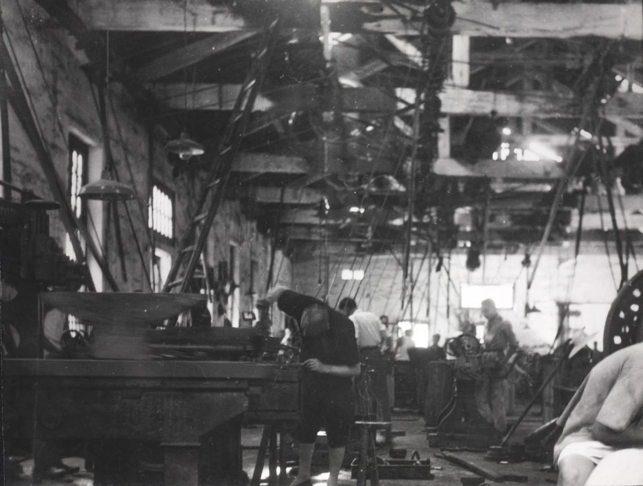 1934年武漢,解放前,沒(méi)有產(chǎn)線的概念,全部利用張之洞早年開(kāi)辦的紡紗局廠房,撥用了其他廠的舊機(jī)床設(shè)備,進(jìn)行手工作坊式生產(chǎn)。