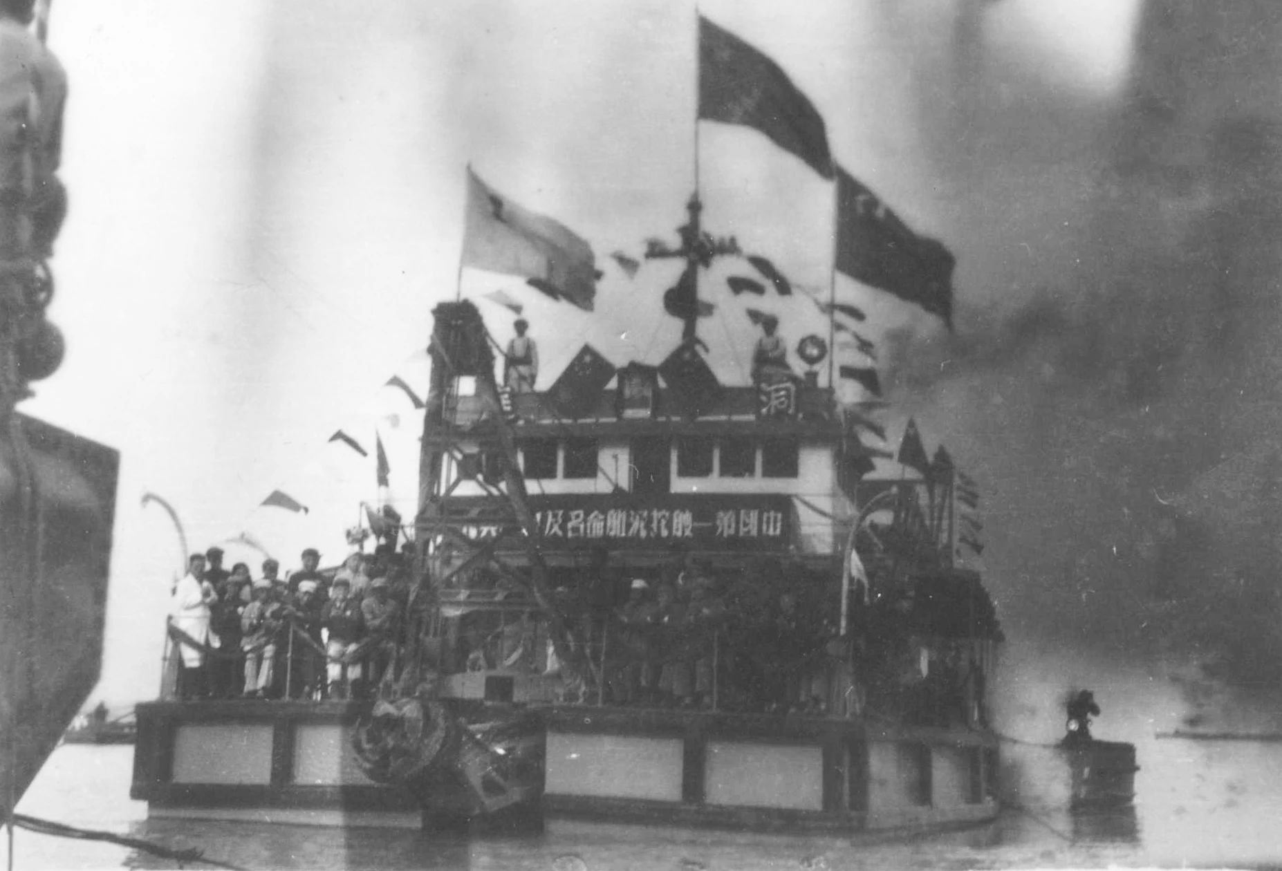 1950年廣州1950年,萬(wàn)山海戰(zhàn)功臣“前進(jìn)號(hào)”炮艇在工廠下水。