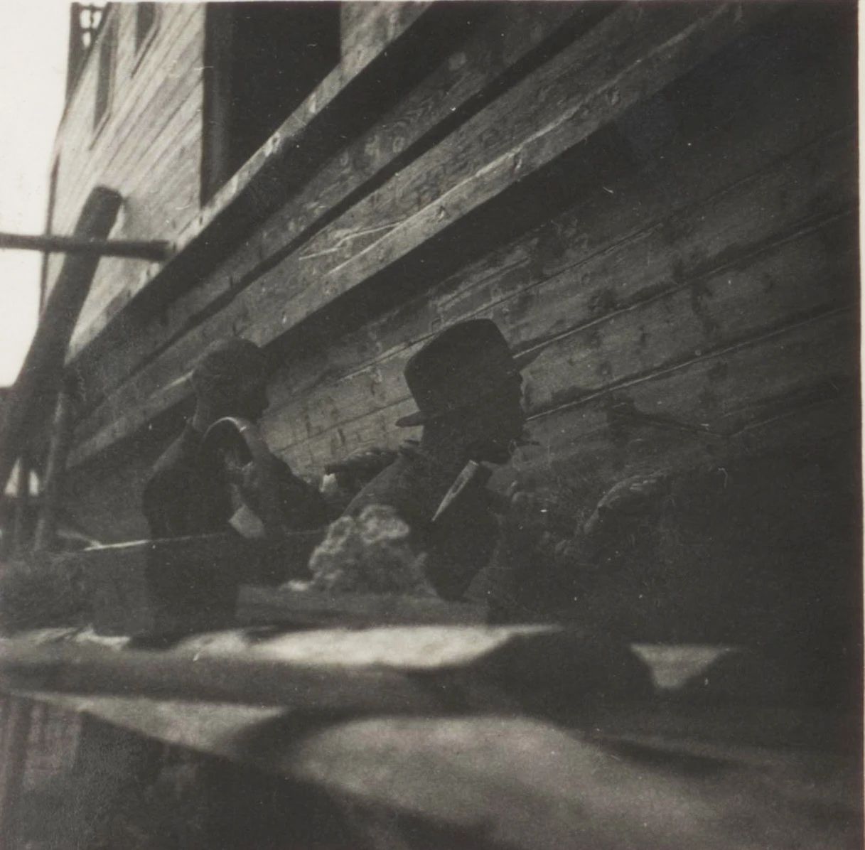 1934年武漢,上世紀(jì)30年代,武昌造船成立之初,工人們以手工作業(yè)“敲敲打打”形式開(kāi)展修造船業(yè)務(wù)。修造的船只大多為100~300噸、鋼肋骨與木殼結(jié)構(gòu),僅有少量是鋼鉚接船體。建造的船只只能在長(zhǎng)江上航行跑跑運(yùn)輸。為了生存和救國(guó),船廠還建造一些農(nóng)用機(jī)械器具、槍支,以輔助民生、支援抗日。