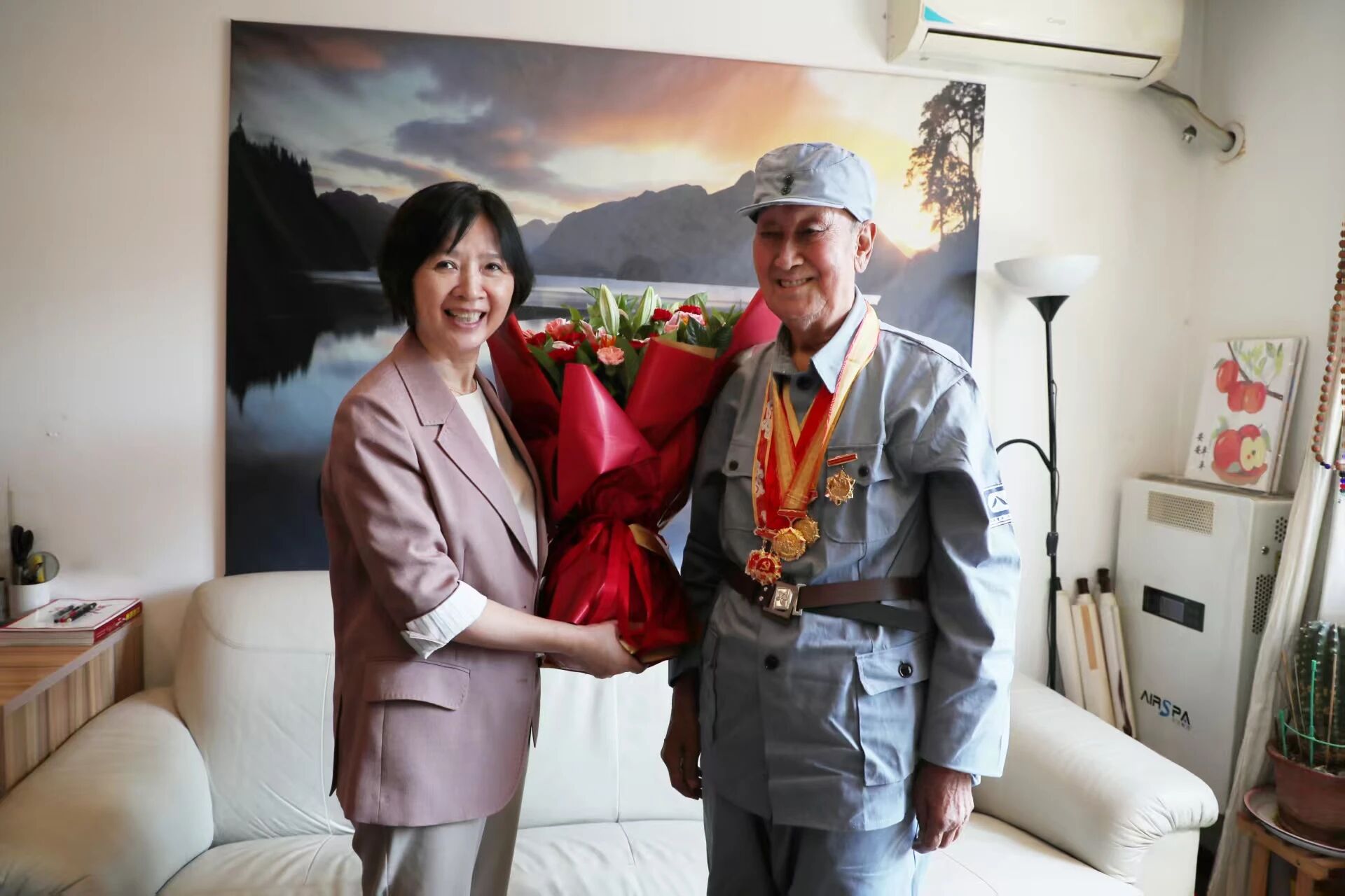 在紀念中國人民抗日戰爭暨世界反法西斯戰爭勝利80周年之際,中國船舶集團有限公司黨組副書記、董事賈海英走訪慰問抗戰老兵焦英杰,頒發“中國人民抗日戰爭勝利80周年”紀念章,并代表集團公司黨組向他致以崇高敬意和誠摯問候。