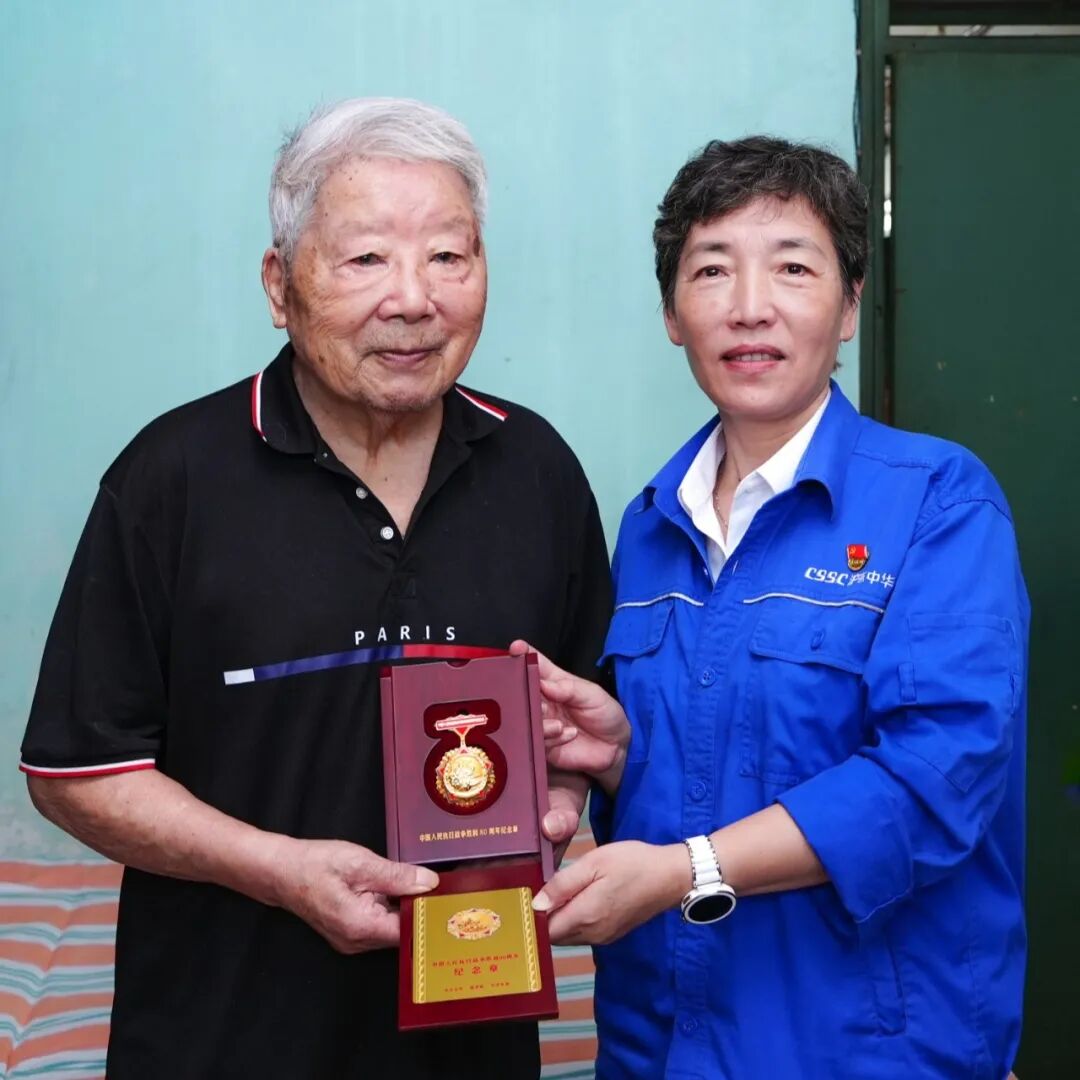 近期,中船集團離退休干部局及滬東中華、黃埔文沖、七一〇所、中船河柴、中船風帆、昆船公司、中船綠洲、華南船機等單位分別走訪慰問抗戰老兵,轉達組織的關心和問候,向他們致以崇高敬意和誠摯祝愿,并送上“中國人民抗日戰爭勝利80周年”紀念章。抗戰勝利80周年紀念活動前夕,中船集團將累計走訪49名抗戰老兵。