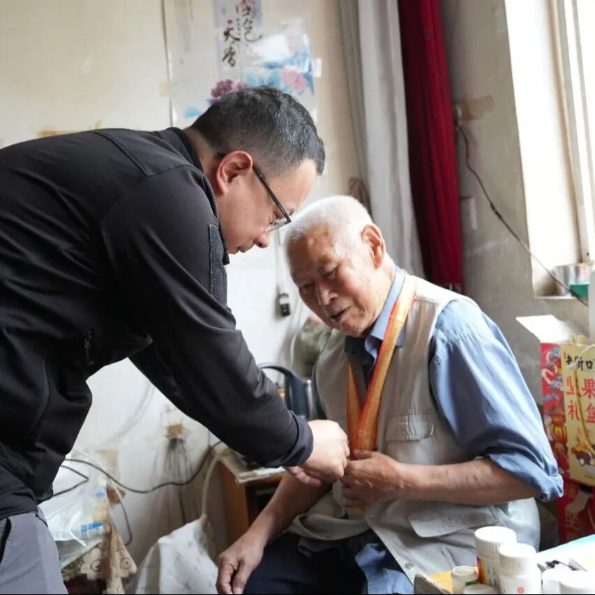 賈海英在焦英杰家中與其促膝交談,悉心詢問他的身體狀況和生活情況,專注聽他講述抗戰時期的崢嶸歲月,頻頻點頭回應并追問細節,衷心地感謝他在抗戰時期作出的巨大犧牲和貢獻,并祝愿他身體健康、福壽綿長;同時,叮囑總部各部門及相關單位要及時關心、了解抗戰老兵的生活和工作情況,使大家真切感受到集團公司黨組的關懷與溫暖。