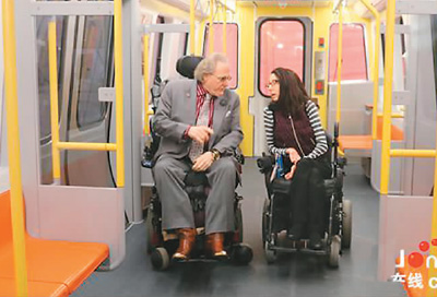 “現(xiàn)在,平生第一次,我不再需要別人幫我進(jìn)到車廂里了。這種獨(dú)立性對我來講至關(guān)重要。”馬薩諸塞州波士頓地鐵老乘客懷特先生坐著輪椅在車廂里溜達(dá)了一圈,對地鐵新車充滿期待。當(dāng)?shù)貢r間4月3日,在美國波士頓舉行的橙線地鐵模型車首次展出活動上,美國民眾感受了來自中國的地鐵車廂。更寬敞、美觀,設(shè)計更加人性化,讓美國民眾為之點(diǎn)贊。“車廂內(nèi)外側(cè)都有專門的按鈕,可以讓坐在輪椅里的人在上、下車的時候直接啟動車廂底部的專用輪椅車平板,通行完全無障礙。”懷特先生說。