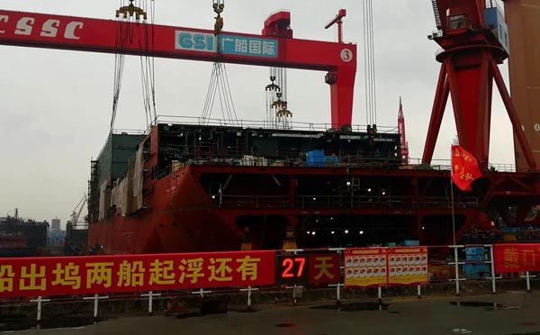 ????對于如此重要的設(shè)備,廣船國際總裝部甲裝二課,從3月2日起開始對這3塊跳板進(jìn)行裝焊,經(jīng)過3天2夜的奮戰(zhàn)全部裝焊完成!