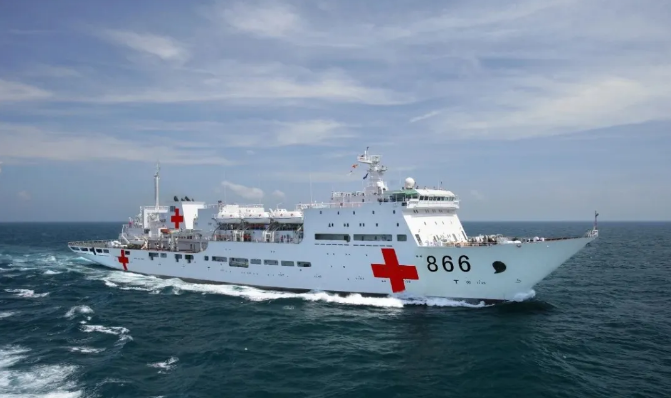 “和平方舟”號醫(yī)院船,舷號866,共有8層甲板,船內(nèi)設(shè)有傷病員換乘、檢傷分類、門診、住院、后送撤離五大醫(yī)療區(qū);擁有300多張可固定的床位,7間醫(yī)護(hù)辦公室,8個(gè)護(hù)士站,8間潔凈手術(shù)室,各類診療科室18個(gè);配備200多種醫(yī)療設(shè)備,具有遠(yuǎn)洋救生能力強(qiáng)、救護(hù)手段多樣、醫(yī)療設(shè)施完備、配套設(shè)備先進(jìn)、選派隨船醫(yī)務(wù)人員醫(yī)術(shù)精湛等特點(diǎn),相當(dāng)于一所流動(dòng)的“海上三甲醫(yī)院”。