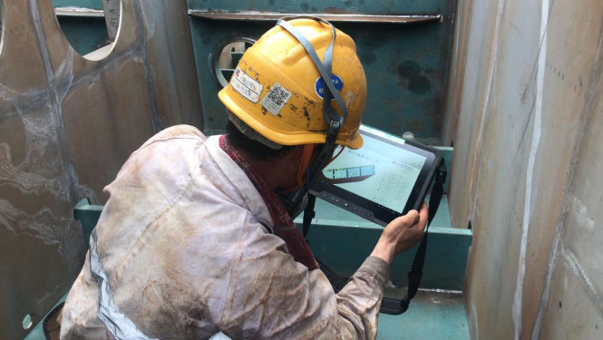 項目推進過程中,滬東中華結構設計團隊凝心聚力,攻堅克難,一舉打破傳統的“先三維建模后二維出圖”模式,創新出一種“基于模型的三維”標注方式,解決了傳統三維設計意圖表達問題,節省了三維設計模型到二維圖紙的轉換步驟,使工藝制造信息更直觀更統一,真正實現設計工藝制造的一體化。
