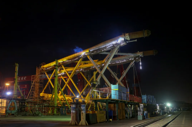 吸力筒導(dǎo)管架風機基礎(chǔ)交付后將用于廣東省陽江市陽西縣沙扒灣300兆瓦海上風電項目。