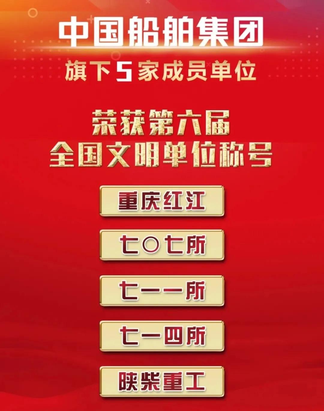 近日,中央精神文明建設指導委員會印發文件,明確了復查確認繼續保留“全國文明單位”榮譽稱號的單位。 中國船舶集團共17家成員單位順利通過復查,蟬聯“全國文明單位”稱號,它們分別是:江南造船、渤船集團、風帆公司、汾西重工、七院、七〇一所、七〇二所、七〇三所、七〇四所、七〇五所、七〇八所、七一六所、七一九所、七二二所、中船九院、上海船院、中國海裝。