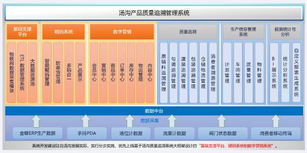 涵蓋供應(yīng)鏈管理、訂單管理、生產(chǎn)計(jì)劃排程、生產(chǎn)過程管控、智慧倉儲(chǔ)、智慧物流、數(shù)字營(yíng)銷、質(zhì)量追溯及數(shù)據(jù)決策等企業(yè)生產(chǎn)經(jīng)營(yíng)全流程的產(chǎn)品質(zhì)量溯源大平臺(tái);
