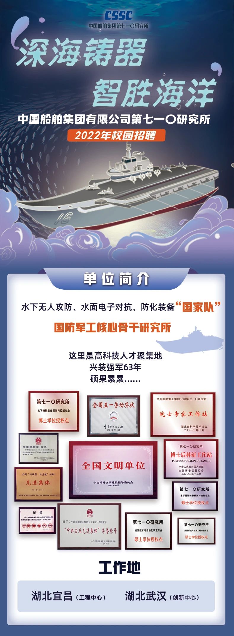 中國船舶集團旗下七一〇所、七二五所校園招聘啟事