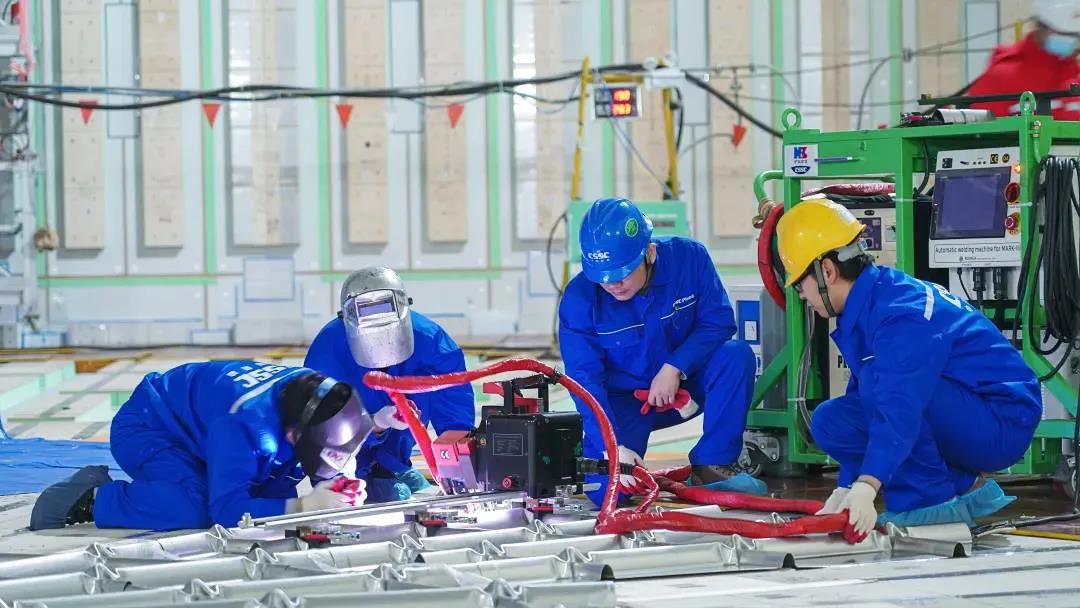 滬東中華是國際LNG儲運裝備制造領先企業,是唯一能夠同時建造No.96、MARK Ⅲ兩型LNG薄膜艙的船企。在中國船舶集團高質量發展戰略引領下,滬東中華不斷加強開拓LNG全產業鏈,其中也包括將Mark Ⅲ圍護系統技術由海向陸延伸。公司組織了最精干力量,應用最先進技術工藝,實施最嚴格工程管理,派出130多人的建造團隊,奮戰在項目現場,執行一流質量標準,與各方精誠合作,通過該項目逐步帶動大型LNG薄膜儲罐技術在中國推向深入。