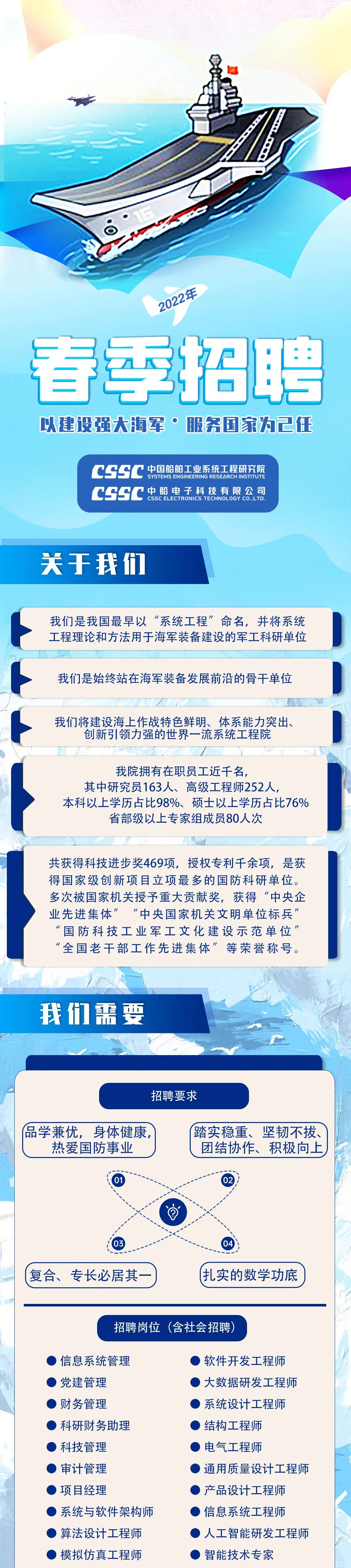招聘|中國船舶系統工程研究院、中船電科等你加入