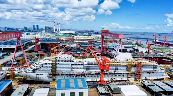 2019年10月18日,中國船舶集團高質(zhì)量發(fā)展“一號工程”——中國首艘國產(chǎn)大型郵輪在外高橋造船正式開工,全面進入實質(zhì)性建造階段,標(biāo)志著中國船舶工業(yè)正式跨入大型郵輪建造新時代;2020年11月10日,迎來塢內(nèi)連續(xù)搭載總裝里程碑節(jié)點,標(biāo)志著中國船舶工業(yè)在摘取“皇冠上最后一顆明珠”的征程上,又邁出了堅實的一大步;2021年10月18日,如期實現(xiàn)全船貫通;12月17日,如期實現(xiàn)塢內(nèi)起浮,標(biāo)志著該工程從結(jié)構(gòu)和舾裝建造的“上半場”全面轉(zhuǎn)入內(nèi)裝和系統(tǒng)完工調(diào)試的“深水區(qū)”。2022年8月8日,第二艘國產(chǎn)大型郵輪正式開工建造,大型郵輪邁入“雙輪”建造時代,標(biāo)志著中國船舶工業(yè)已初步掌握大型郵輪設(shè)計建造關(guān)鍵核心技術(shù),實現(xiàn)批量化、系列化建造指日可待。備受國內(nèi)外關(guān)注的首艘國產(chǎn)大型郵輪目前已全面進入內(nèi)部裝潢和設(shè)備(系統(tǒng))調(diào)試關(guān)鍵階段,朝著最終的命名交付里程碑節(jié)點穩(wěn)步邁進。