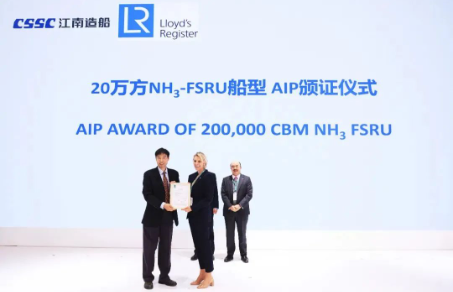 20萬立方米NH3-FSRU船型發布,英國勞氏船級社(LR)頒發該船型的原則性認可證書。