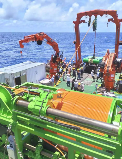 中國船舶集團七〇四所研制的深水重載布放回收絞車助力“開拓二號”布放回收全流程作業,為其刷新紀錄等一系列復雜的深海采礦試驗提供技術支撐。