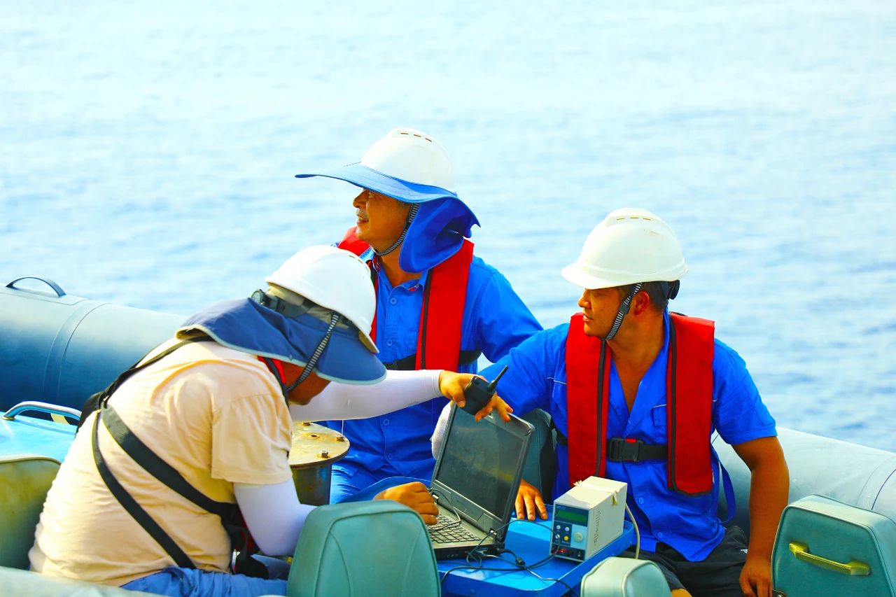 七〇二所——水池模型內(nèi)部,科研人員正忍受著近55℃高溫,開展試驗前的設備安裝和調(diào)試工作。