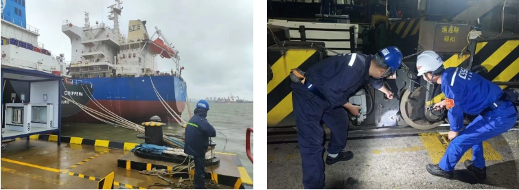 臺風(fēng)肆虐時,組織管理人員抗臺值守,以“臺風(fēng)不撤,我們不撤”的原則堅守一線。臺風(fēng)預(yù)警解除后,10小時內(nèi)完成登船梯搭設(shè)及纜繩解除,迅速恢復(fù)正常生產(chǎn)。憑借科學(xué)預(yù)案與堅守,最終實現(xiàn)纜繩零斷裂、船舶零移位,有力保障了生命財產(chǎn)安全。