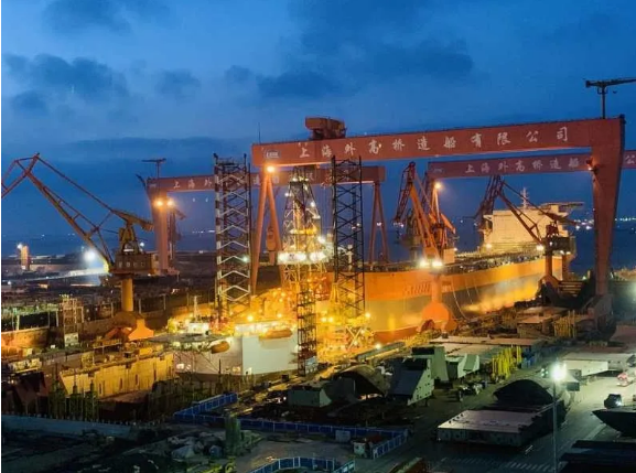 ????3月7日,隨著一艘海上浮式生產儲油船(FPSO)出塢,一艘21萬噸紐卡斯爾型散貨船艏艉、兩個巨型分段同時起浮。標志著備關注的擁有“中國第一長度船塢”之美譽的中國船舶集團所屬外高橋造船大型郵輪船廠適應性改造重點工程——2號船塢改造項目主體結構完工。