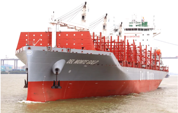 近日,中國船舶集團旗下黃埔文沖為美國Del Monte公司建造的600FEU全冷藏集裝箱船首制船“DEL MONTE GOLD”號交付。該型船總長192米,型寬30米,設計吃水9.3米,為國際遠洋冷藏集裝箱船,全部貨柜箱均為冷藏集裝箱,是一款冷箱量大、裝載靈活、便于維護的綠色環(huán)保型船舶。