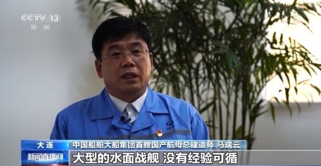 中國船舶大船集團首艘國產航母總建造師馬瑞云:第一次生產這種超過300多米長的大型的水面戰艦,沒有經驗可循。