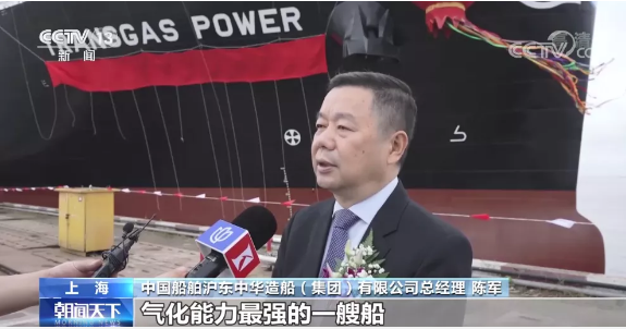 滬東中華總經理陳軍:這艘船是我們中國第一次新建的FSRU(再氣化)項目,同時也是目前單個FSRU(再氣化)裝置方面氣化能力最強的一艘船。