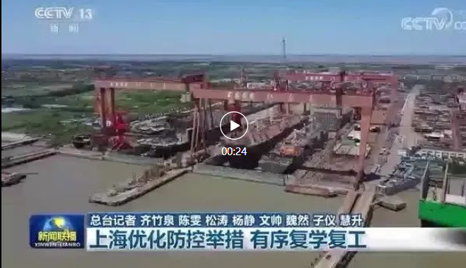 新聞聯播聚焦上海優化防控舉措,加快推動復工復產,點贊中國船舶集團旗下三大船企都實現復工復產。