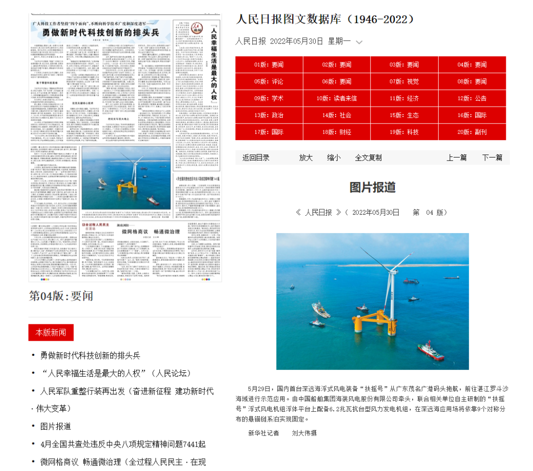 5月29日,中國船舶集團(tuán)旗下中國海裝牽頭研制的國內(nèi)首臺深遠(yuǎn)海浮式風(fēng)電裝備——“扶搖號”從廣東茂名碼頭起航,前往平均水深65米的廣東湛江附近海域投入示范應(yīng)用。