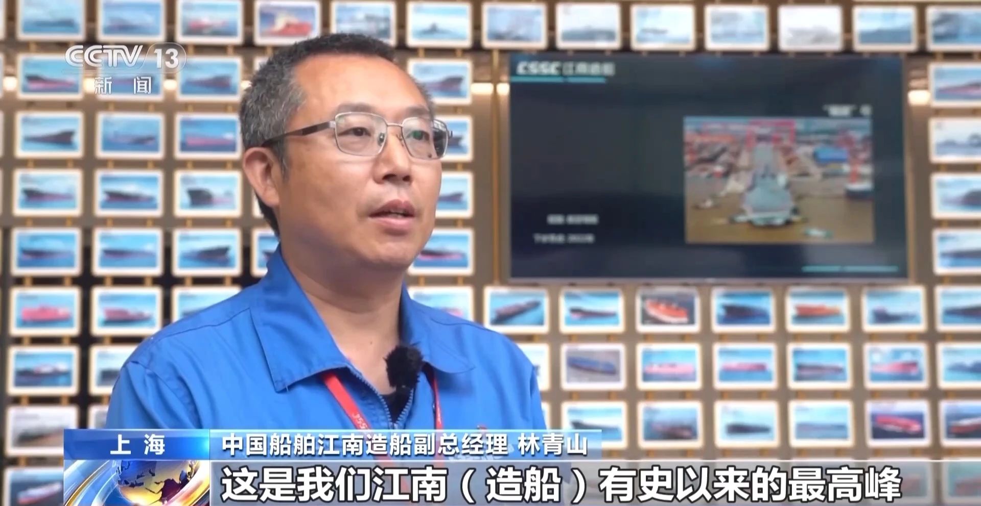 中國船舶江南造船副總經理 林青山:今年前三季度,我們在民品接單上已經達到了400億元人民幣,這是我們江南造船有史以來的最高峰。特別是目前在技術驅動的船市旺盛的基礎上,我們對未來市場都是充滿了信心。