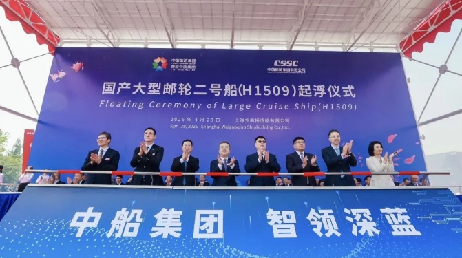 4月28日,第二艘國產大型郵輪“愛達·花城號”起浮儀式在中國船舶集團有限公司旗下外高橋造船舉行。中船集團黨組副書記、董事、總經理王國強出席儀式并致辭。工信部裝備工業二司司長徐春榮,中旅集團黨委副書記、總經理范云軍出席儀式并致辭。文旅部產業發展司副司長馬力,中船集團黨組成員、副總經理胡賢甫,中旅集團黨委副書記、董事石善博,上海市經濟和信息化委員會副主任蒲亞鵬,浦東新區副區長李慧出席儀式。