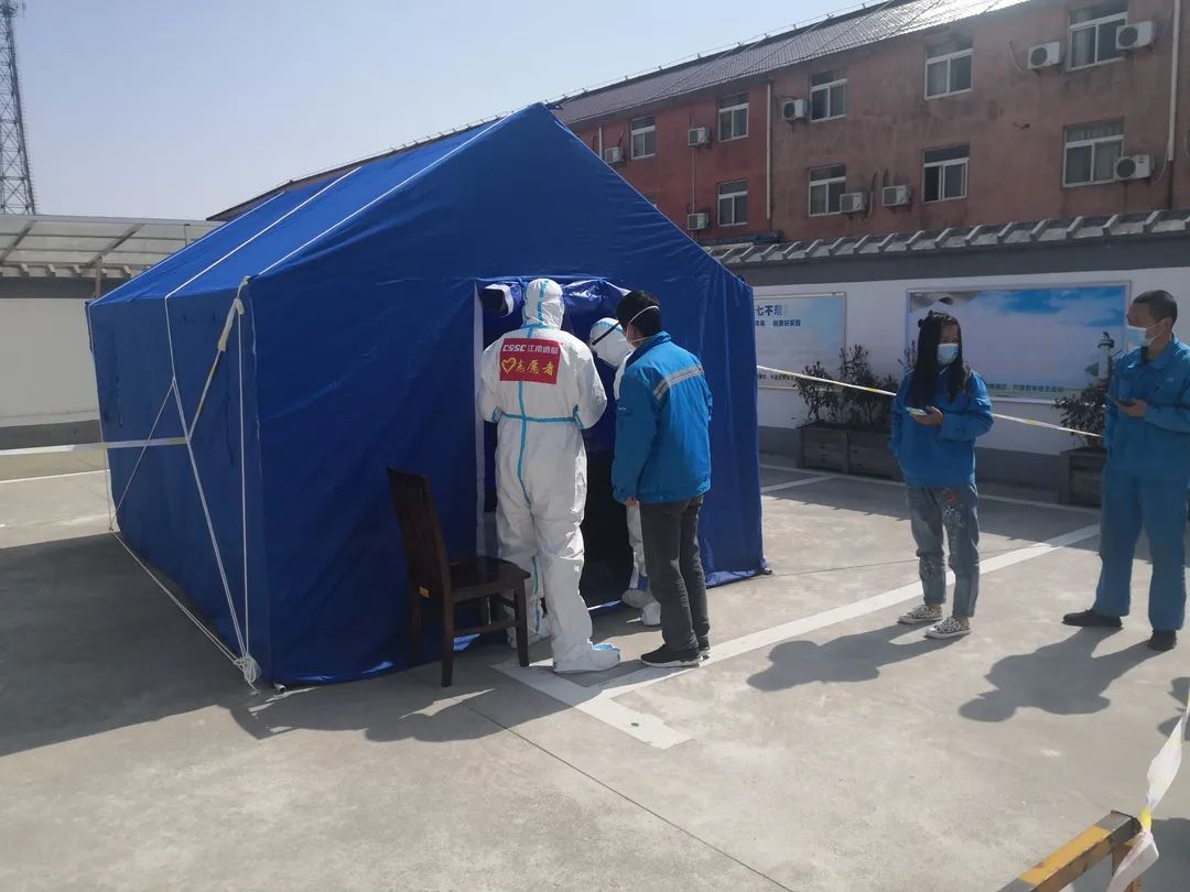 臨時黨支部和工作組的成立,把每個人都納入了組織,一些員工看到工作組成立后激動地表示,“終于找到組織了”。在他們的支持下,社區(qū)村居的核酸檢測由內(nèi)部志愿者配合醫(yī)護人員完成,不用江南造船再派出志愿者到村居,減少了人員交叉,降低了感染風(fēng)險。